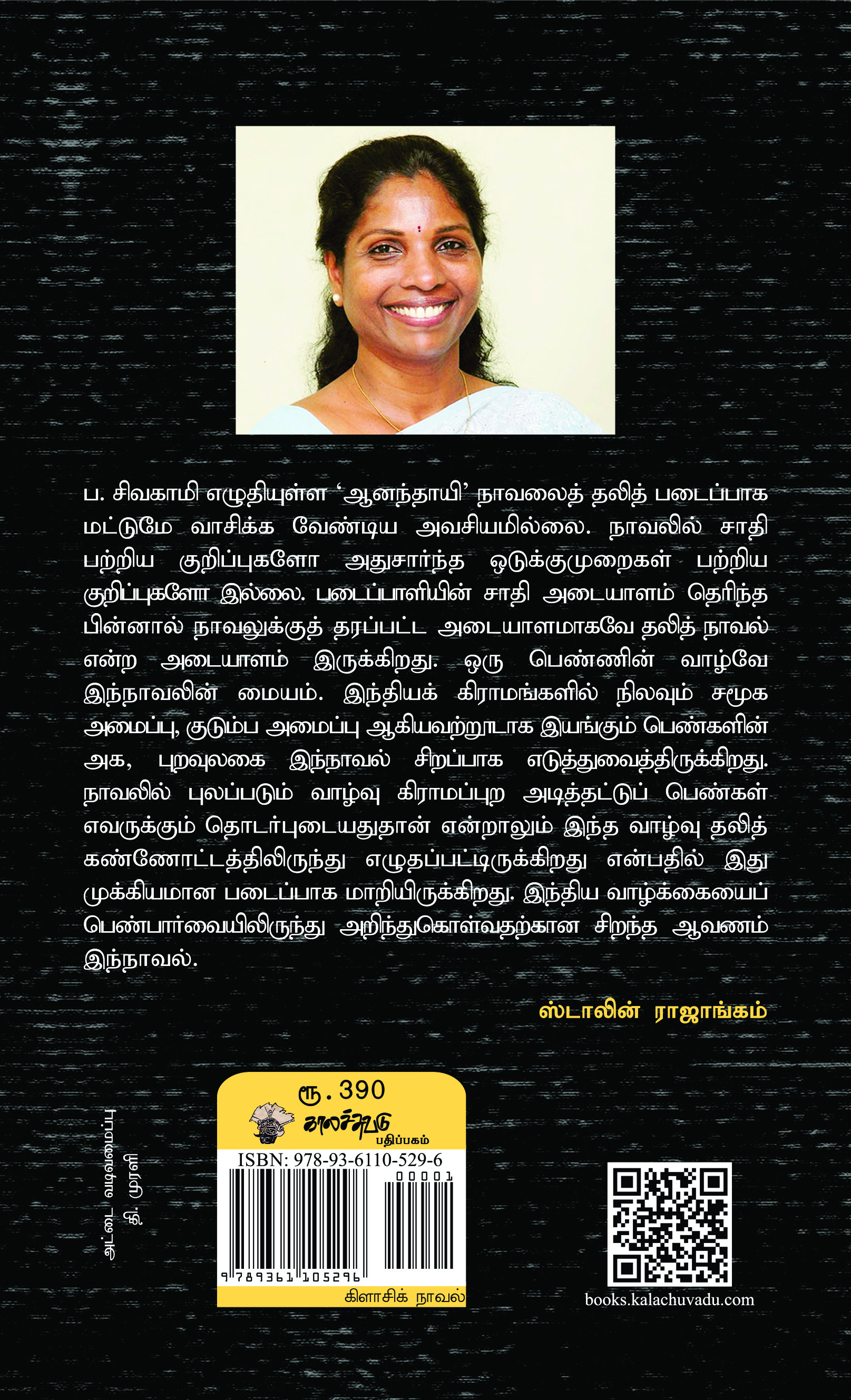 ப. சிவகாமி எழுதியுள்ள ‘ஆனந்தாயி’ நாவலைத் தலித் படைப்பாக மட்டுமே வாசிக்க வேண்டிய அவசியமில்லை. நாவலில் சாதி பற்றிய குறிப்புகளோ அதுசார்ந்த ஒடுக்குமுறைகள் பற்றிய குறிப்புகளோ இல்லை. படைப்பாளியின் சாதி அடையாளம் தெரிந்த பின்னால் நாவலுக்குத் தரப்பட்ட அடையாளமாகவே தலித் நாவல் என்ற அடையாளம் இருக்கிறது. ஒரு பெண்ணின் வாழ்வே இந்நாவலின் மையம். இந்தியக் கிராமங்களில் நிலவும் சமூக அமைப்பு, குடும்ப அமைப்பு ஆகியவற்றூடாக இயங்கும் பெண்களின் அக, புறவுலகை இந்நாவல் சிறப்பாக எடுத்துவைத்திருக்கிறது. நாவலில் புலப்படும் வாழ்வு கிராமப்புற அடித்தட்டுப் பெண்கள் எவருக்கும் தொடர்புடையதுதான் என்றாலும் இந்த வாழ்வு தலித் கண்ணோட்டத்திலிருந்து எழுதப்பட்டிருக்கிறது என்பதில் இது முக்கியமான படைப்பாக மாறியிருக்கிறது. இந்திய வாழ்க்கையைப் பெண்பார்வையிலிருந்து அறிந்துகொள்வதற்கான சிறந்த ஆவணம் இந்நாவல். -ஸ்டாலின் ராஜாங்கம்