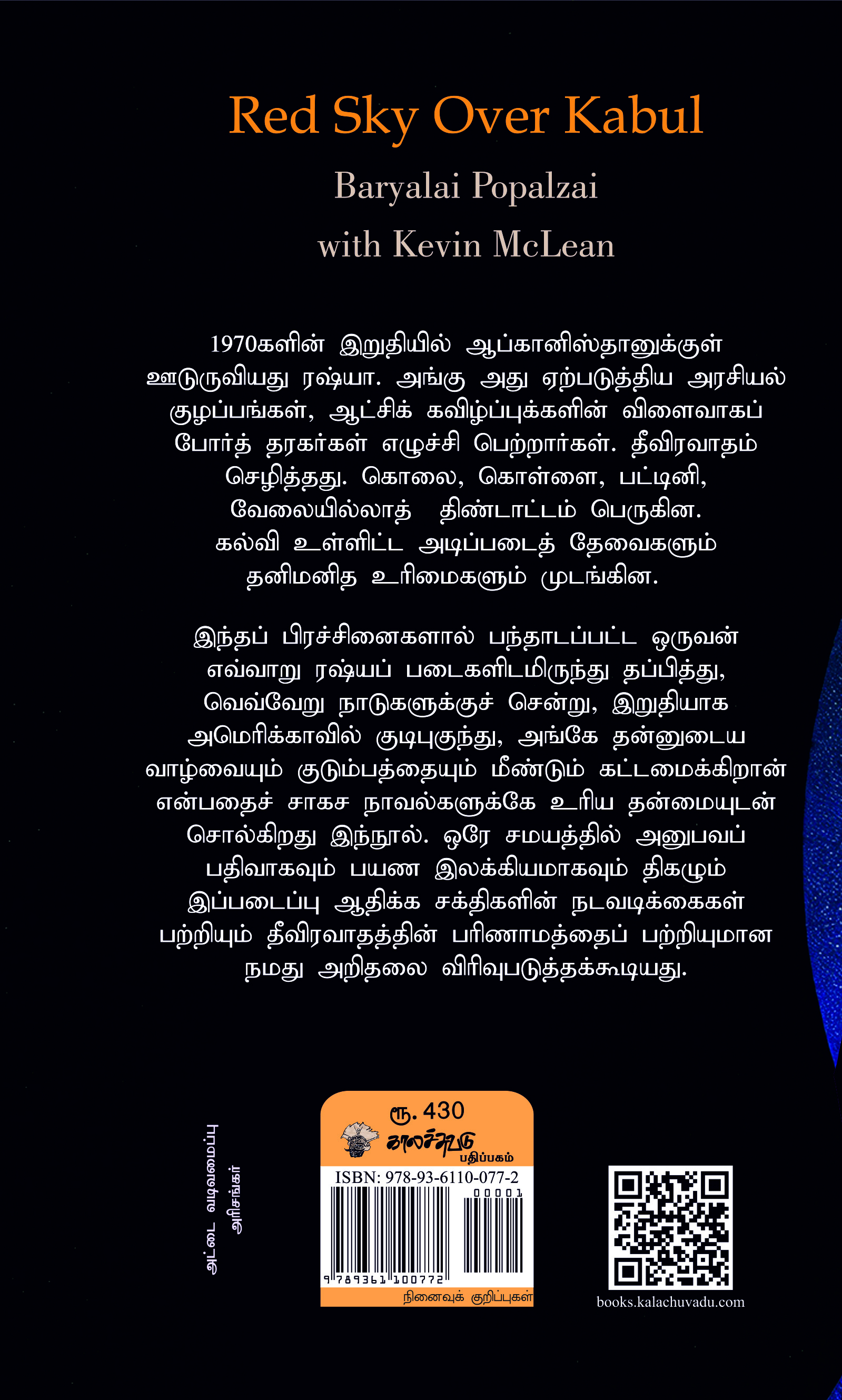 -1970களின் இறுதியில் ஆப்கானிஸ்தானுக்குள் ஊடுருவியது ரஷ்யா. அங்கு அது ஏற்படுத்திய அரசியல் குழப்பங்கள், ஆட்சிக் கவிழ்ப்புக்களின் விளைவாகப் போர்த் தரகர்கள் எழுச்சி பெற்றார்கள். தீவிரவாதம் செழித்தது. கொலை, கொள்ளை, பட்டினி, வேலையில்லாத் திண்டாட்டம் பெருகின. கல்வி உள்ளிட்ட அடிப்படைத் தேவைகளும் தனிமனித உரிமைகளும் முடங்கின. இந்தப் பிரச்சினைகளால் பந்தாடப்பட்ட ஒருவன் எவ்வாறு ரஷ்யப் படைகளிடமிருந்து தப்பித்து, வெவ்வேறு நாடுகளுக்குச் சென்று, இறுதியாக அமெரிக்காவில் குடிபுகுந்து, அங்கே தன்னுடைய வாழ்வையும் குடும்பத்தையும் மீண்டும் கட்டமைக்கிறான் என்பதைச் சாகச நாவல்களுக்கே உரிய தன்மையுடன் சொல்கிறது இந்நூல். ஒரே சமயத்தில் அனுபவப் பதிவாகவும் பயண இலக்கியமாகவும் திகழும் இப்படைப்பு ஆதிக்க சக்திகளின் நடவடிக்கைகள் பற்றியும் தீவிரவாதத்தின் பரிணாமத்தைப் பற்றியுமான நமது அறிதலை விரி வுபடுத்தக்கூடியது.