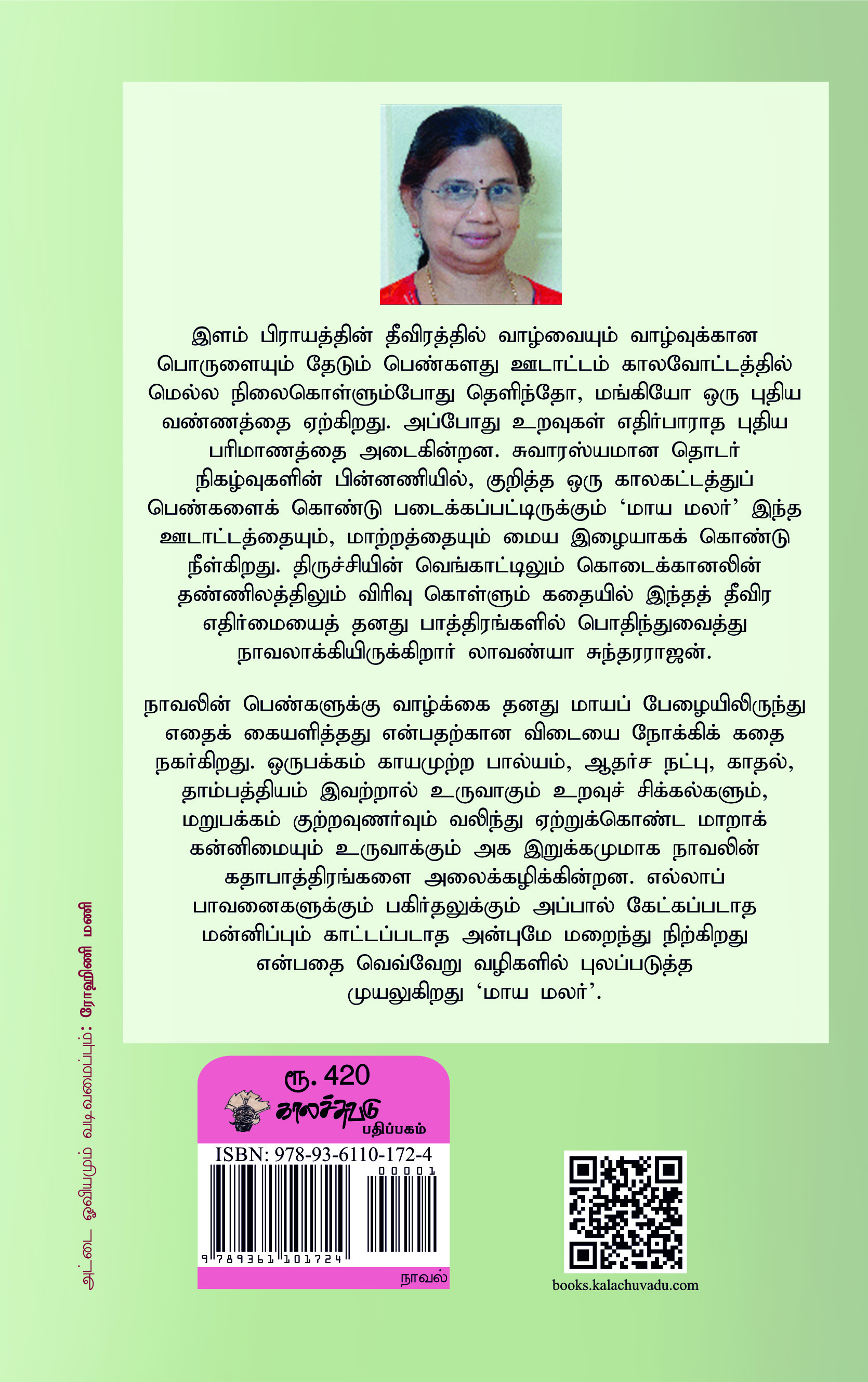 இளம் பிராயத்தின் தீவிரத்தில் வாழ்வையும் வாழ்வுக்கான பொருளையும் தேடும் பெண்களது ஊடாட்டம் காலவோட்டத்தில் மெல்ல நிலைகொள்ளும்போது தெளிந்தோ, மங்கியோ ஒரு புதிய வண்ணத்தை ஏற்கிறது. அப்போது உறவுகள் எதிர்பாராத புதிய பரிமாணத்தை அடைகின்றன. சுவாரஸ்யமான தொடர் நிகழ்வுகளின் பின்னணியில், குறித்த ஒரு காலகட்டத்துப் பெண்களைக் கொண்டு படைக்கப்பட்டிருக்கும் ‘மாய மலர்’ இந்த ஊடாட்டத்தையும், மாற்றத்தையும் மைய இழையாகக் கொண்டு நீள்கிறது. திருச்சியின் வெங்காட்டிலும் கொடைக்கானலின் தண்ணிலத்திலும் விரிவு கொள்ளும் கதையில் இந்தத் தீவிர எதிர்மையைத் தனது பாத்திரங்களில் பொதிந்துவைத்து நாவலாக்கியிருக்கிறார் லாவண்யா சுந்தரராஜன். நாவலின் பெண்களுக்கு வாழ்க்கை தனது மாயப் பேழையிலிருந்து எதைக் கையளித்தது என்பதற்கான விடையை நோக்கிக் கதை நகர்கிறது. ஒருபக்கம் காயமுற்ற பால்யம், ஆதர்ச நட்பு, காதல், தாம்பத்தியம் இவற்றால் உருவாகும் உறவுச் சிக்கல்களும், மறுபக்கம் குற்றவுணர்வும் வலிந்து ஏற்றுக்கொண்ட மாறாக் கன்னிமையும் உருவாக்கும் அக இறுக்கமுமாக நாவலின் கதாபாத்திரங்களை அலைக்கழிக்கின்றன. எல்லாப் பாவனைகளுக்கும் பகிர்தலுக்கும் அப்பால் கேட்கப்படாத மன்னிப்பும் காட்டப்படாத அன்புமே மறைந்து நிற்கிறது என்பதை வெவ்வேறு வழிகளில் புலப்படுத்த முயலுகிறது ‘மாய மலர்’.